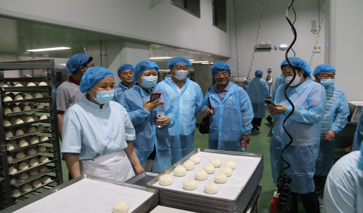座談會召開之前,王浩濤書記等領(lǐng)導(dǎo)帶領(lǐng)老黨員代表現(xiàn)場參觀了長清食品產(chǎn)業(yè)園。在園區(qū)內(nèi)各生產(chǎn)車間現(xiàn)場,寬敞明亮的車間環(huán)境、一排排整齊劃一的流水線設(shè)備,統(tǒng)一著裝精神抖擻的員工們,讓老黨員代表眼前一亮,心潮澎湃,感慨萬千,大家感慨:金德利快餐終于從手工作坊跨越到現(xiàn)代化工廠生產(chǎn),這樣的改變是原來不敢想像的,大家對未來發(fā)展前景充滿信心和期待。